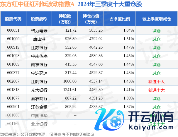 东方红中证红利低波动指数A为指数型-股票基金,凭证最新一期基金季报泄露,该基金金钱建树:股票占净值比94.81%,债券占净值比0.65%,现款占净值比7.3%。基金十大重仓股如下: